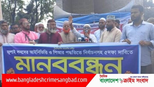 পি আর পদ্ধতি সহ ৫ দফার দাবিতে শ্রীপুরে জামায়াত ইসলামের মানববন্ধন