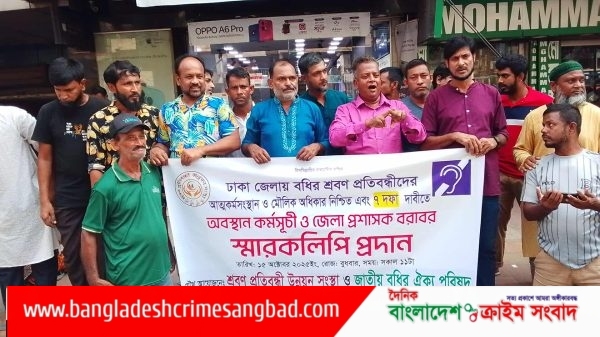 শ্রবণ প্রতিবন্ধী উন্নয়ন সংস্থা ও জাতীয় বধির ঐক্য পরিষদের সাত দফা দাবি আদায়ে স্মারকলিপি প্রদান ও অবস্থান কর্মসূচি