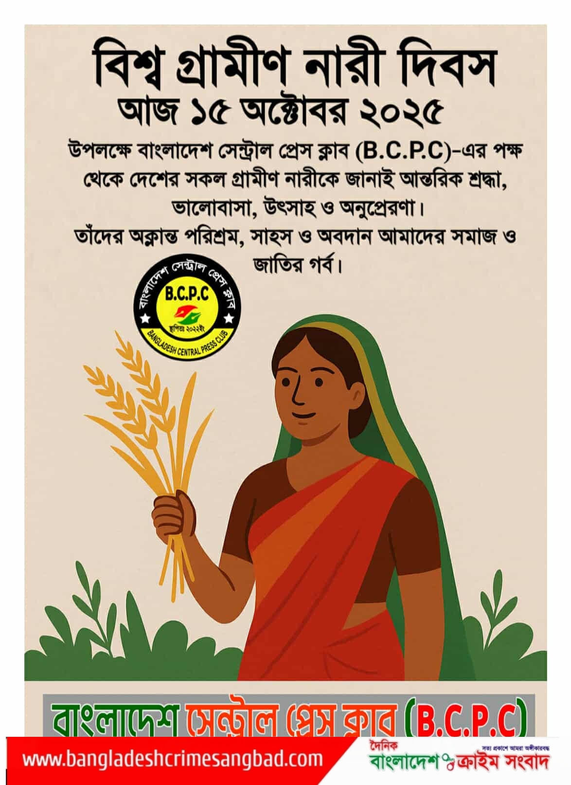 বাংলাদেশ সেন্ট্রাল প্রেস ক্লাব (B.C.P.C)–এর পক্ষ থেকে দেশের সকল গ্রামীণ নারীকে জানাই আন্তরিক শ্রদ্ধা, ভালোবাসা, উৎসাহ ও অনুপ্রেরণা।