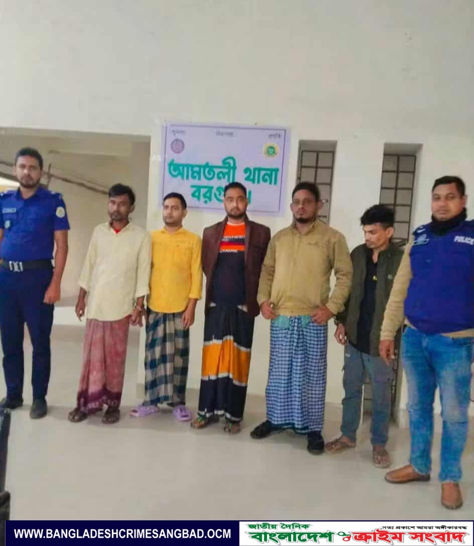 বরগুনার আমতলী ফেরিঘাট সংলগ্ন এলাকায় পার্কিং করে রাখা যাত্রীবিহীন একটি বাসে অগ্নিসংযোগের ঘটনায় পাঁচজনকে আটক করেছে পুলিশ। বৃহস্পতিবার (১৪ নভেম্বর ২০২৫) রাত আনুমানিক ১২টা ৩০ মিনিটে এ ঘটনা ঘটে বলে পুলিশ জানায়।