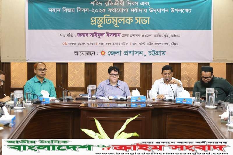 আসন্ন ১৪ ডিসেম্বর “শহিদ বুদ্ধিজীবী দিবস ২০২৫ ” এবং ১৬ ডিসেম্বর “মহান বিজয় দিবস-২০২৫” যথাযথ মর্যাদায় উদযাপনের উপলক্ষ্যে আজ চট্টগ্রাম সার্কিট হাউস সম্মেলন কক্ষে এক প্রস্তুতিমূলক সভা অনুষ্ঠিত হয়