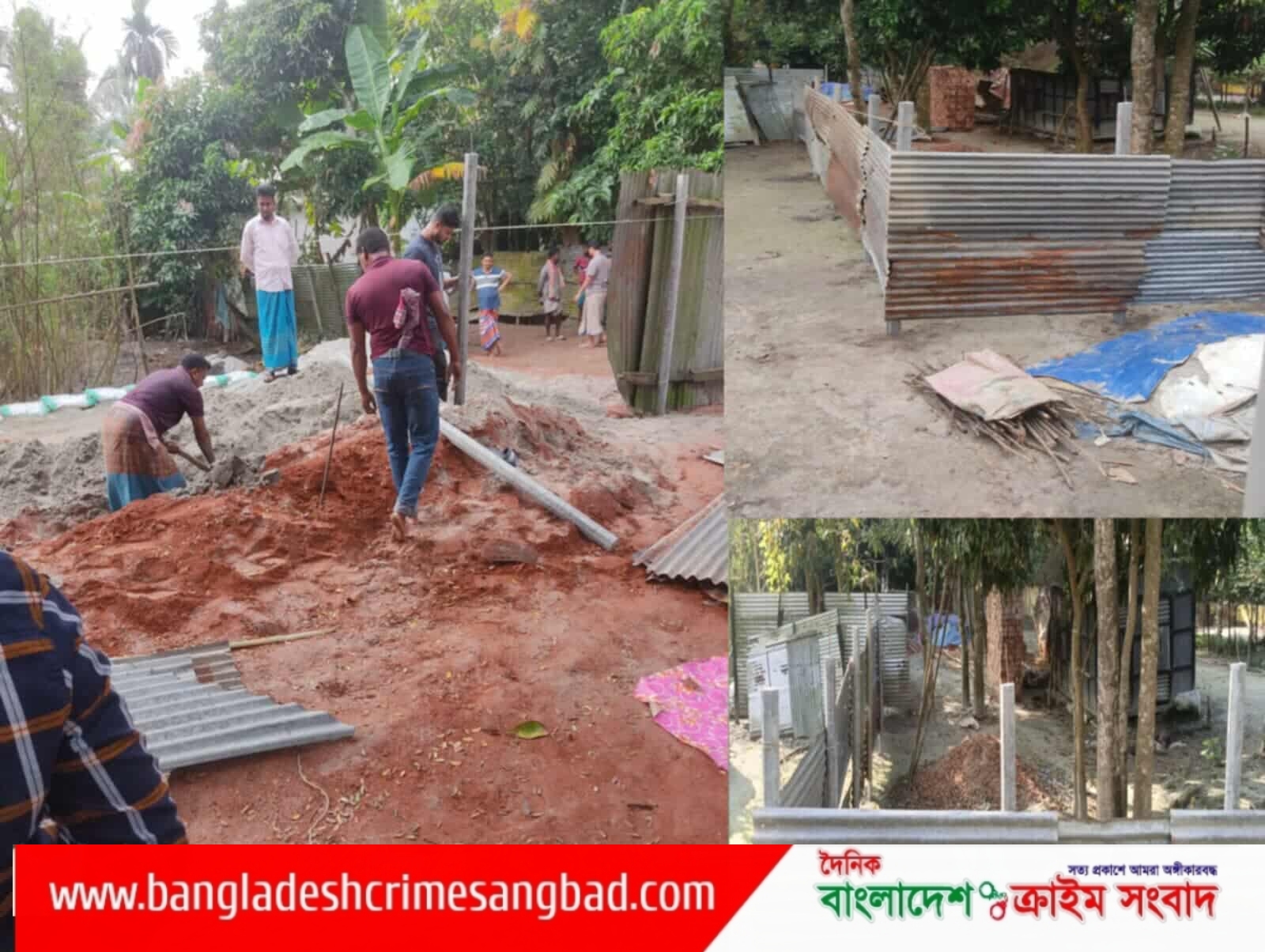 কুমিল্লার বরুড়া উপজেলার ১২নং আড্ডা ইউনিয়নের পিলগিরি গ্রামে বসতঘরের সামনে টিনের বেড়া তুলে চলাচলের পথ বন্ধ করে দেওয়ার অভিযোগ উঠেছে।জামাল হোসেন পাটোয়ারীর পরিবার চরম ভোগান্তিতে পড়েছে। ভুক্তভোগী পরিবারের সদস্যগন জানান, হঠাৎ করে টিনের বেড়া দেওয়ার কারণে আমরা সবাই ঘর থেকে বের হতে মারাত্মক সমস্যায় পড়তে হচ্ছে । স্হানীয় এালাকাবাসী জানান বিষয়টি নিয়ে দুই পক্ষের মধ্যে দীর্ঘদিন ধরে জমি সংক্রান্ত বিরোধ চলছে। এ ঘটনায় আদালতে দেওয়ানি মামলা নং–২৪৪/২০২২ (মোকাম কুমিল্লা, বিজ্ঞ সহকারী জজ আদালত, বরুড়া) দায়ের রয়েছে। মামলার প্রেক্ষিতে বিবাদীদের বিরুদ্ধে অস্থায়ী নিষেধাজ্ঞার আবেদনও দাখিল করা হয়েছে। ভুক্তভোগী মোঃ জামাল হোসেন পাটোয়ারীর পরিবারের সদস্যগন বলেন, “আমরা বহু বছর ধরে এই জায়গায় বসবাস করছি। কিন্তু আবু তাহের গং জোরপূর্বক টিনের বেড়া তুলে আমাদের ঘরের সামনে রাস্তা বন্ধ করে দিয়েছে।” পরিবারের সদস্যগন আরও জানান, রহিমানগর বি.এ.বি. উচ্চ বিদ্যালয়ের প্রধান শিক্ষক ও পিলগিরি খারুল হাজী আব্বাস আলী আদর্শ উচ্চ বিদ্যালয়ের সভাপতি মো. আবুল হোসেন পাটোয়ারী এবং তাঁর ছোট ভাই আবু জাফর (মনু)—উভয়েই ১২নং আড্ডা ইউনিয়নের ৩নং ওয়ার্ডের বাসিন্দা—গত ১ নভেম্বর ২০২৫, শনিবার, বহিরাগত কিছু লোকের সহযোগিতায় দেশীয় অস্ত্র হাতে নিয়ে পাশের মো. জামাল হোসেন পাটোয়ারীর ঘরের সামনে জোরপূর্বক টিনের বেড়া দেন। এর ফলে জামাল হোসেন পাটোয়ারীর পরিবারের বসতবাড়ি থেকে বের হওয়ার একমাত্র পথ বন্ধ হয়ে যায়। অভিযোগ অনুযায়ী, দেশীয় অস্ত্র দেখিয়ে বাড়ির মহিলাদের ভয়ভীতি প্রদর্শন করা হয়। এলাকার লোকজন ঘটনাটি দেখলেও বহিরাগতদের ভয়ে কেউ মুখ খুলতে সাহস পাননি। এ বিষয়ে অভিযুক্ত আবু জাফর (মনু) সাংবাদিকদের জানান, “আমরা আমাদের জায়গায় বেড়া দিয়েছি।” এদিকে উক্ত ঘটনা কে কেন্দ্র করে এখানে আরও বড় ধরনের ঘটনা ঘটতে পারে৷ তাই এলাকাবাসী জানান দ্রুত সংশ্লিষ্ট কতৃপক্ষ এদিকে নজর দেওয়া দরকার৷ স্থানীয়রা প্রশাসনের দ্রুত হস্তক্ষেপ ও বিরোধের সুষ্ঠু তদন্ত দাবি করেছেন। এদিকে জামাল হোসেন পাটোয়ারীর পরিবারের আরেক সদস্য জানান আমরা বসত ঘর তৈরি করার জন্য লক্ষ লক্ষ টাকার মালামাল এনেও তাদের বাঁধার জন্য আমরা ঘর করতে পারছি না ফলে আমাদের লক্ষ লক্ষ টাকার মালামাল নস্ঠ হয়ে যাচ্ছে৷ আমরা উক্ত ঘটনার বিচার চাই৷ এবং আমাদের ঘরের সামনে বেড়া দিয়ে আমাদের ঘরবন্দী করে রাখার বিচার চাই৷