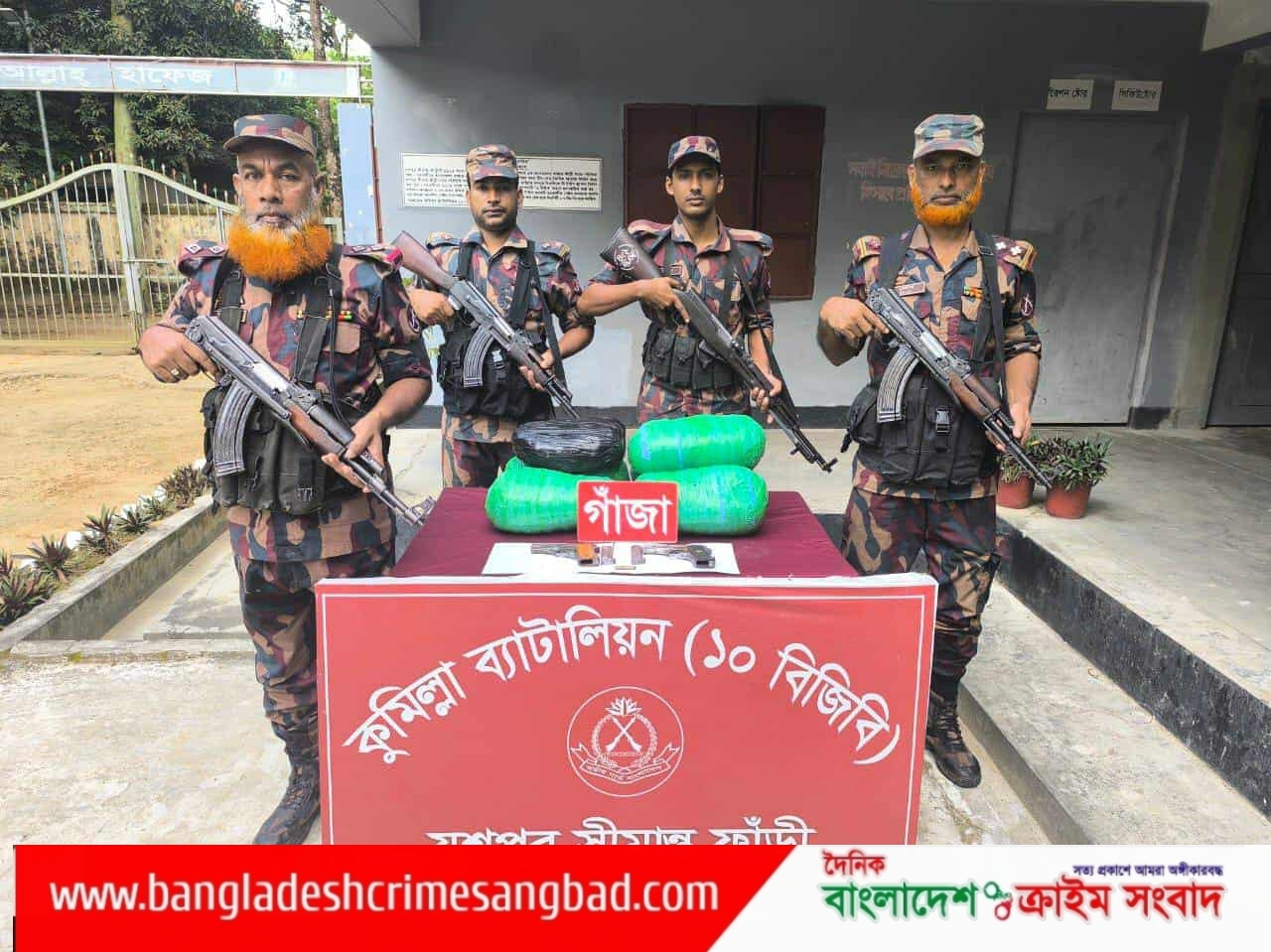 ব্রাহ্মণবাড়িয়া বর্ডার গার্ড বাংলাদেশ (বিজিবি) কুমিল্লা ব্যাটালিয়ন (১০ বিজিবি) সীমান্ত নিরাপত্তা ও চোরাচালান প্রতিরোধে নিয়মিত অভিযান পরিচালনার অংশ হিসেবে এক বিশেষ অভিযানে দুইটি বিদেশী পিস্তল, দুইটি ম্যাগাজিন, দুই রাউন্ড গুলি ও ১২ কেজি গাঁজা উদ্ধার করেছে। বিজিবি জানায়, মহাপরিচালক কর্তৃক ঘোষিত “বিজিবি হবে সীমান্তের নিরাপত্তা ও আস্থার প্রতীক” এই মূলমন্ত্রে দীক্ষিত হয়ে কুমিল্লা ব্যাটালিয়ন দায়িত্বপূর্ণ সীমান্ত এলাকায় অস্ত্র, মাদকদ্রব্যসহ সকল প্রকার চোরাচালান প্রতিরোধে সর্বদা তৎপর। এ লক্ষ্যে টহল কার্যক্রম ও গোয়েন্দা নজরদারি জোরদার করা হয়েছে। গোপন সংবাদের ভিত্তিতে ব্যাটালিয়ন অধিনায়কের দিক নির্দেশনায়, ৩ নভেম্বর সোমবার ভোররাতে ৩টা ৩০ মিনিটে যশপুর বিওপি’র একটি বিশেষ টহল দল সদর দক্ষিণ উপজেলার ধনপুর মাঠ এলাকায় অভিযান পরিচালনা করে। সীমান্ত শূন্যরেখা থেকে প্রায় ২০০ গজ ভেতরে পরিচালিত ওই অভিযানে উল্লিখিত অস্ত্র ও মাদক উদ্ধার করা হয়। বিজিবির পক্ষ থেকে জানানো হয়, এই সফল অভিযান বিজিবির পেশাদারিত্ব ও সীমান্ত সুরক্ষায় অবিচল অঙ্গীকারের প্রতিফলন। কুমিল্লা ব্যাটালিয়ন (১০ বিজিবি) জানিয়েছে, সীমান্তে যে কোন প্রকার অপরাধ দমনে তারা সর্বদা কঠোর অবস্থানে রয়েছে এবং ভবিষ্যতেও এ ধরণের অভিযান অব্যাহত থাকবে।