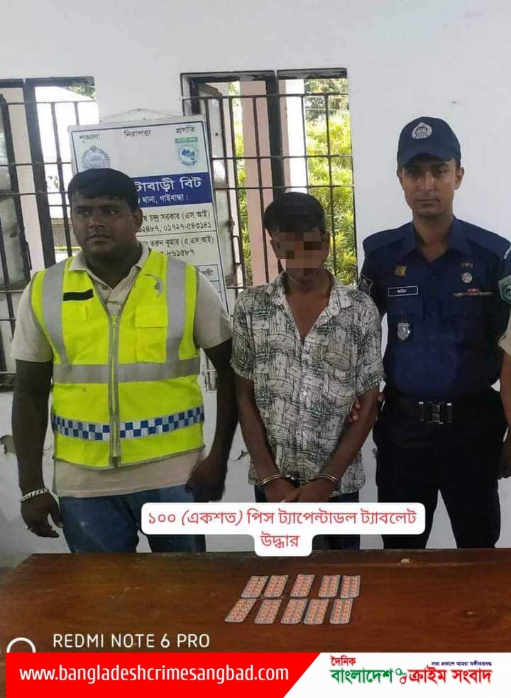 গাইবান্ধা জেলা পুলিশের পৃথক পৃথক অভিযানে ১০০ পিস ট্যাবলেট সহ ০১ জন মাদক কারবারি গ্রেফতারি