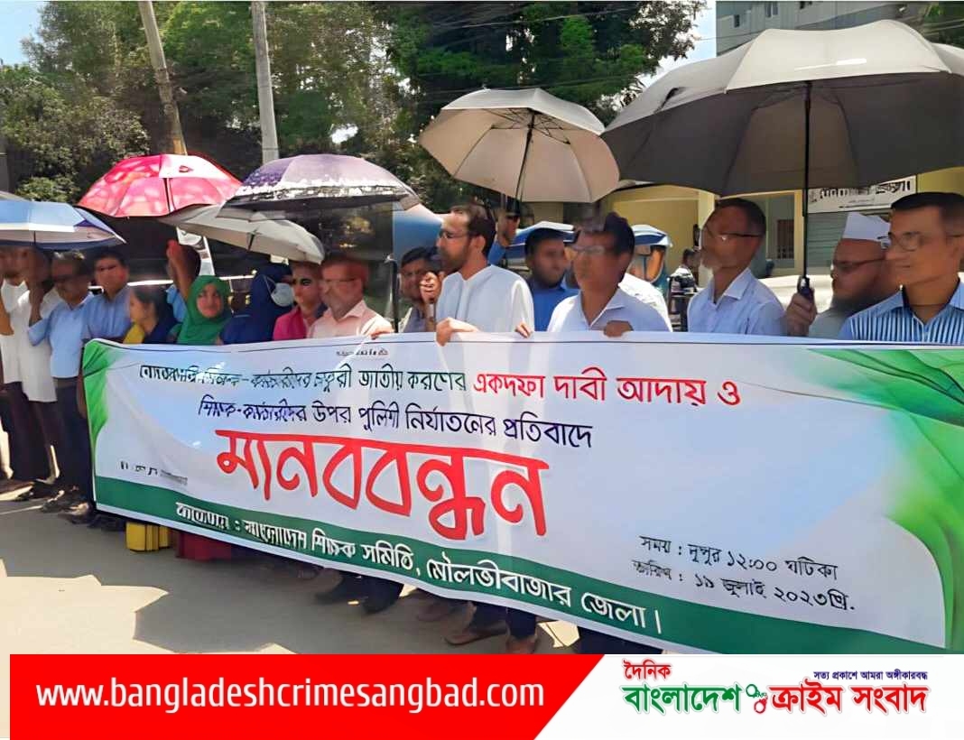 চাকুরি জাতীয়করণ ও পুলিশ নির্যাতনের প্রতিবাদে মানববন্ধন অনুষ্ঠিত