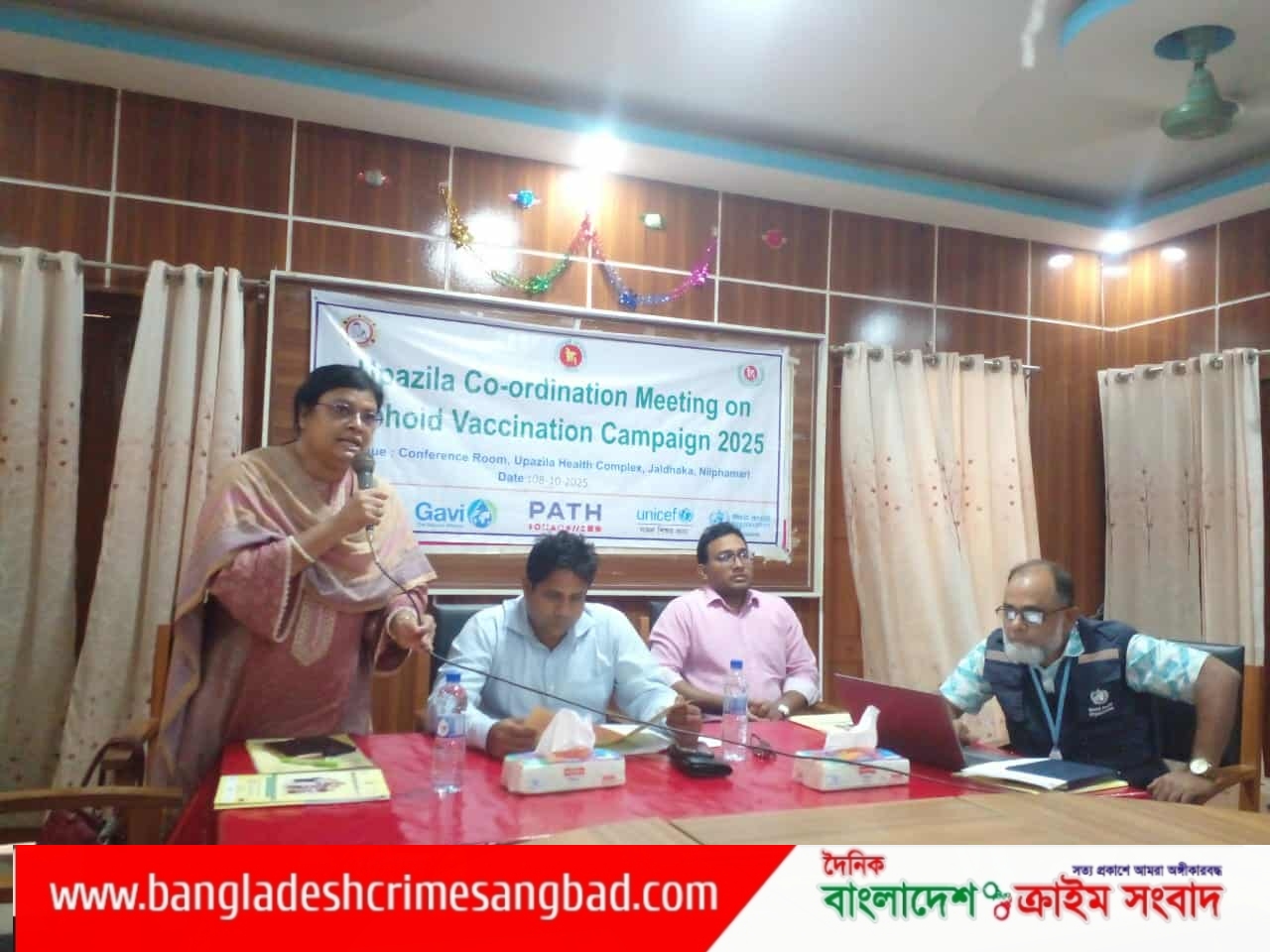 নীলফামারীর জলঢাকায় টাইফয়েড টিকা প্রদান কার্যক্রমের সমন্বয় সভা অনুষ্ঠিত হয়েছে। বুধবার (৮ অক্টোবর) দুপুরে উপজেলা স্বাস্থ্য কমপ্লেক্সের হলরুমে এ সভার আয়োজন করা হয়। উপজেলা নির্বাহী অফিসার জাহিদ ইমরুল মোজাক্কিন এর সভাপতিত্বে ডাঃ মাহাদী হাসান এর সঞ্চালনায় এতে বক্তব্য রাখেন উপজেলা স্বাস্থ্য ও পরিবার পরিকল্পনা কর্মকর্তা ডাঃ নন্দা সেন গুপ্তা, পরিবার পরিকল্পনা কর্মকর্তা ডাঃ মনিরুজ্জামান, মাধ্যমিক শিক্ষা অফিসার আশরাফুজ্জামান (অতিরিক্ত), উপজেলা শিক্ষা অফিসার সাজ্জাদুজ্জামান (ভারপ্রাপ্ত), প্রেসক্লাব সভাপতি কামরুজ্জামান, জাতীয় সাংবাদিক সংস্থা জলঢাকা উপজেলা শাখার সভাপতি রবিউল ইসলাম রাজ, রিপোর্টার্স ইউনিটি জলঢাকা উপজেলা শাখার সাধারণ সম্পাদক হারুন-অর-রশীদ, উপজেলা স্বাস্থ্য কমপ্লেক্সের চিকিৎসা প্রযুক্তিবিদ রাশেদুল ইসলাম প্রমূখ। সভায় সকল শিক্ষা প্রতিষ্ঠানে নিবন্ধনের মাধ্যমে এই টাইফয়েড টিকা প্রদান কার্যক্রমের সীদ্ধান্ত নেওয়া হয়। আগামী ১২ অক্টোবর থেকে এই কার্যক্রম শুরু হবে। এর আওতায় ৯ মাসের শিশু থেকে ১৫ বছর বয়সী কৈশোরদের মধ্যে প্রায় ১ লাখ ৯ হাজার ৩ শত ১৭ জনকে টিকা দেওয়া হবে। এর মধ্যে ৭৩ হাজার ৭ শত ৯৩ হাজারই স্কুলের শিক্ষার্থী। বাকী ঝড়ে পড়া ৩৫ হাজার ৫ শত ২৪ জন শিশু টিকা পাবে। সভায় বক্তারা গুজবে কান না দেওয়ার জন্য বিশেষ অনুরোধ করেন।