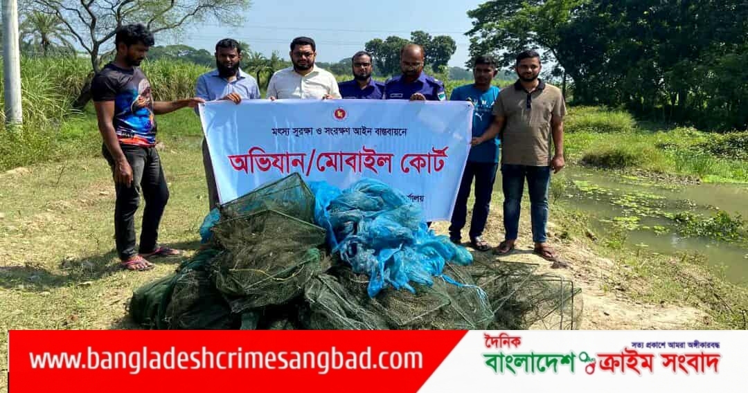 ঝিনাইদহ কালীগঞ্জে ভ্রাম্যমাণ আদালতের অভিযানে ২০টি নিষিদ্ধ অবৈধ চায়না দুয়ারী জাল জব্দ করে সেগুলো আগুনে পুড়িয়ে ধ্বংস করা হয়েছে।