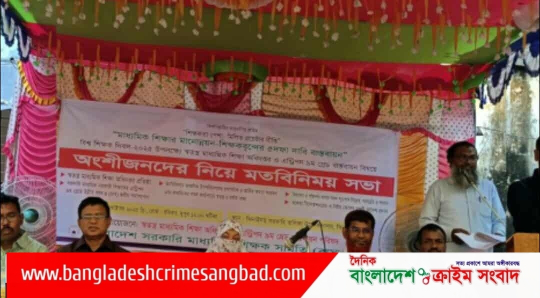 স্বতন্ত্র মাধ্যমিক শিক্ষা অধিদপ্তর প্রতিষ্ঠা ও এন্ট্রিপদ নবম গ্রেড উন্নীত করে চার স্তরীয় পদসোপনের দাবীতে রোববার দুপুরে সরকারী মাধ্যমিক শিক্ষক সমিতি ঝিনাইদহ শাখার উদ্যোগে অংশীজনদের নিয়ে এক মতবিনিময় সভা অনুষ্ঠিত হয়।