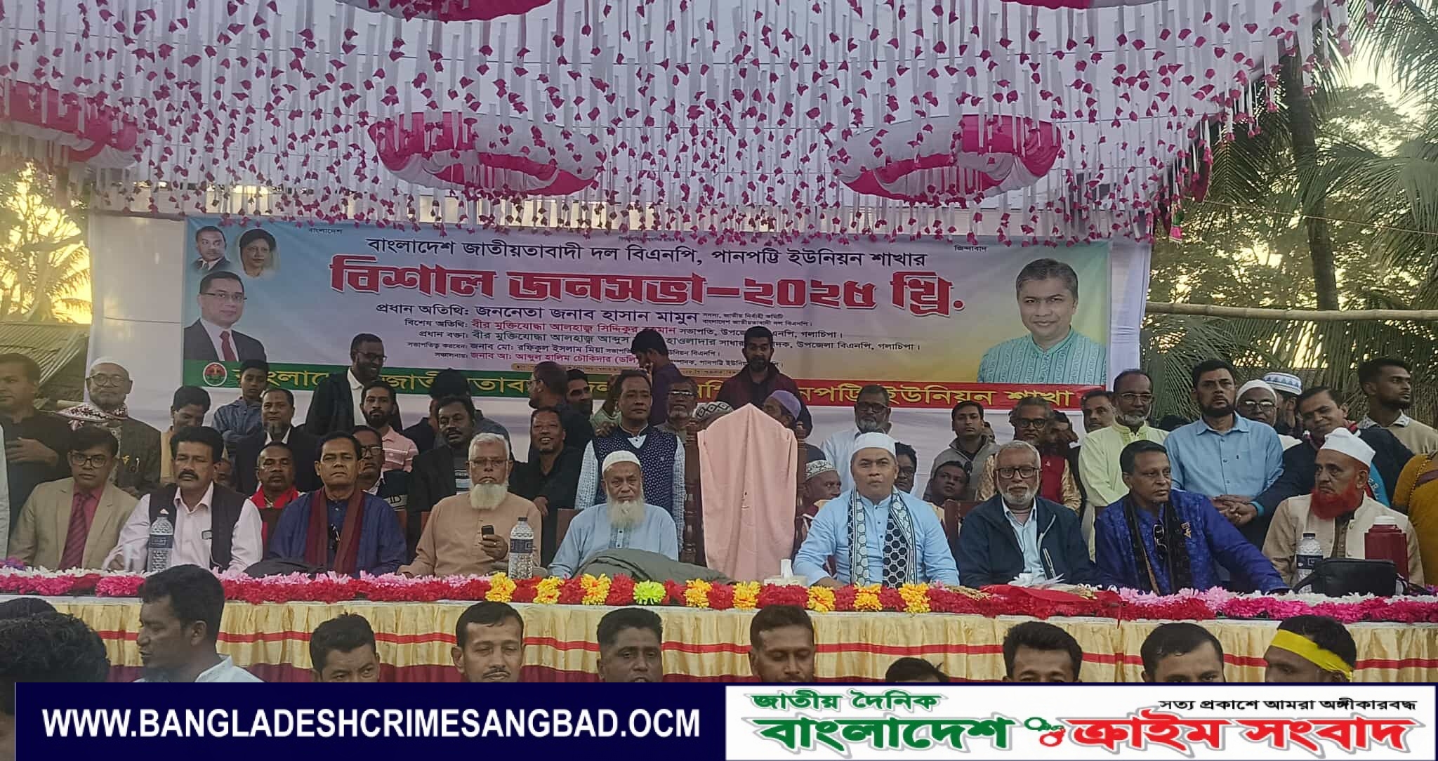 পটুয়াখালীর গলাচিপা উপজেলার পানপট্টি ইউনিয়ন বিএনপির আয়োজনে এক বিশাল জনসভা অনুষ্ঠিত হয়েছে। শুক্রবার (২৮ নভেম্বর) বিকাল ৩টায় পানপট্টি মাধ্যমিক বিদ্যালয় খেলার মাঠে এই বিশাল সমাবেশে সভাপতিত্ব করেন ইউনিয়ন বিএনপির সভাপতি মো. রফিকুল ইসলাম মিয়া।