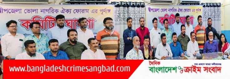 দ্বীপজেলা ভোলা নাগরিক ঐক্য ফোরামের পূর্ণাঙ্গ কমিটি ঘোষণা ভোলার উন্নয়ন ও নাগরিক অধিকারে ঐক্যবদ্ধ নতুন নেতৃত্বের অঙ্গীকার