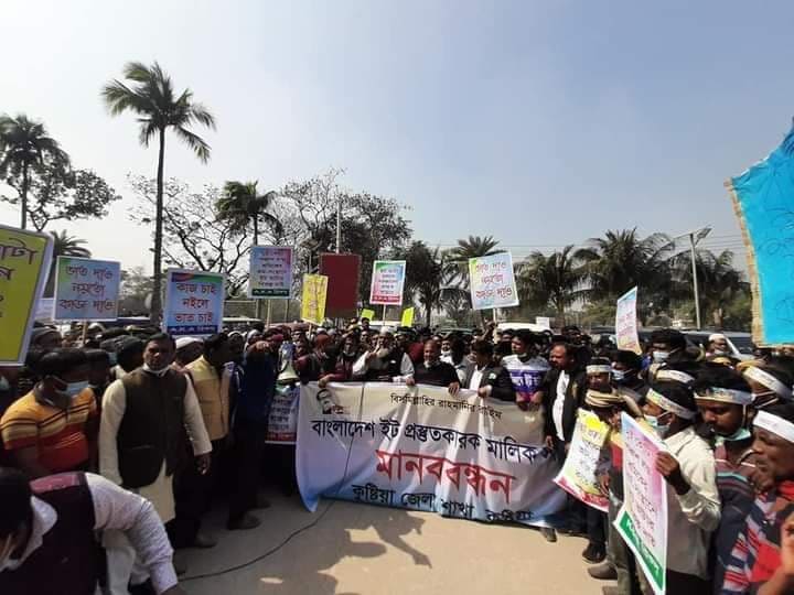 স্টাফ রিপোর্টারঃ ০৪/০২/২০২১ সাম্প্রতিক কালে পরিবেশ অধিদপ্তর কর্তৃক ইট ভাটা ভাংচুর ও লাগামহীন জরিমানা করার প্রতিবাদে খুলনা বিভাগীয় ইট প্রস্তুতকারক মালিক সমিতির উদ্যোগে খুলনা বিভাগের ১০ টা জেলার ইট ভাটার মালিক ও শ্রমিকদের পক্ষ থেকে একযোগে মাননীয় প্রধানমন্ত্রী শেখ হাসিনা বরাবরও নিজ নিজ জেলার সম্মানিত জেলা প্রশাসক এবং জেলা পরিবেশ অধিদপ্তরে স্মারকলিপি প্রদান করা হয়। ২০/০১/২০২১ ইং তারিখে জনাব মোঃ আবু হাসান, বিজ্ঞ নির্বাহী ম্যাজিস্ট্রেট, পরিবেশ অধিদপ্তর, সদর দপ্তর, ঢাকা এর নেতৃত্বে পরিবেশ অধিদপ্তর, কুষ্টিয়া জেলা কার্যালয় কর্তৃক কুষ্টিয়া জেলার দৌলতপুর উপজেলার বিভিন্ন এলাকায় অবৈধ ইটভাটার বিরুদ্ধে মোবাইল কোর্ট পরিচালনা করা হয়। উক্ত ১১ টি ইটভাটাকে সর্বমোট ৬৯ লক্ষ টাকা জরিমানা আদায় করাসহ ০৭ টি ইটভাটা স্কেভেটর দিয়ে ভেঙ্গে দেয়া হয়। উক্ত মোবাইল কোর্টে প্রসিকিউটরের দায়িত্ব পালন করেন অত্র দপ্তরের সহকারী পরিচালক জনাব কমল কুমার বর্মন। এছাড়া উক্ত অভিযানে অত্র দপ্তরের উপ-পরিচালক জনাব মোহাম্মদ আতাউর রহমানসহ অন্যান্য কর্মকর্তা/কর্মচারীগণ উপস্থিত ছিলেন। এ অভিযানে সার্বিক সহযোগিতা প্রদান করে কুষ্টিয়া জেলার র্যা্ব-১২, কুষ্টিয়া জেলা পুলিশ বিভাগ এর সদস্যবৃন্দ।