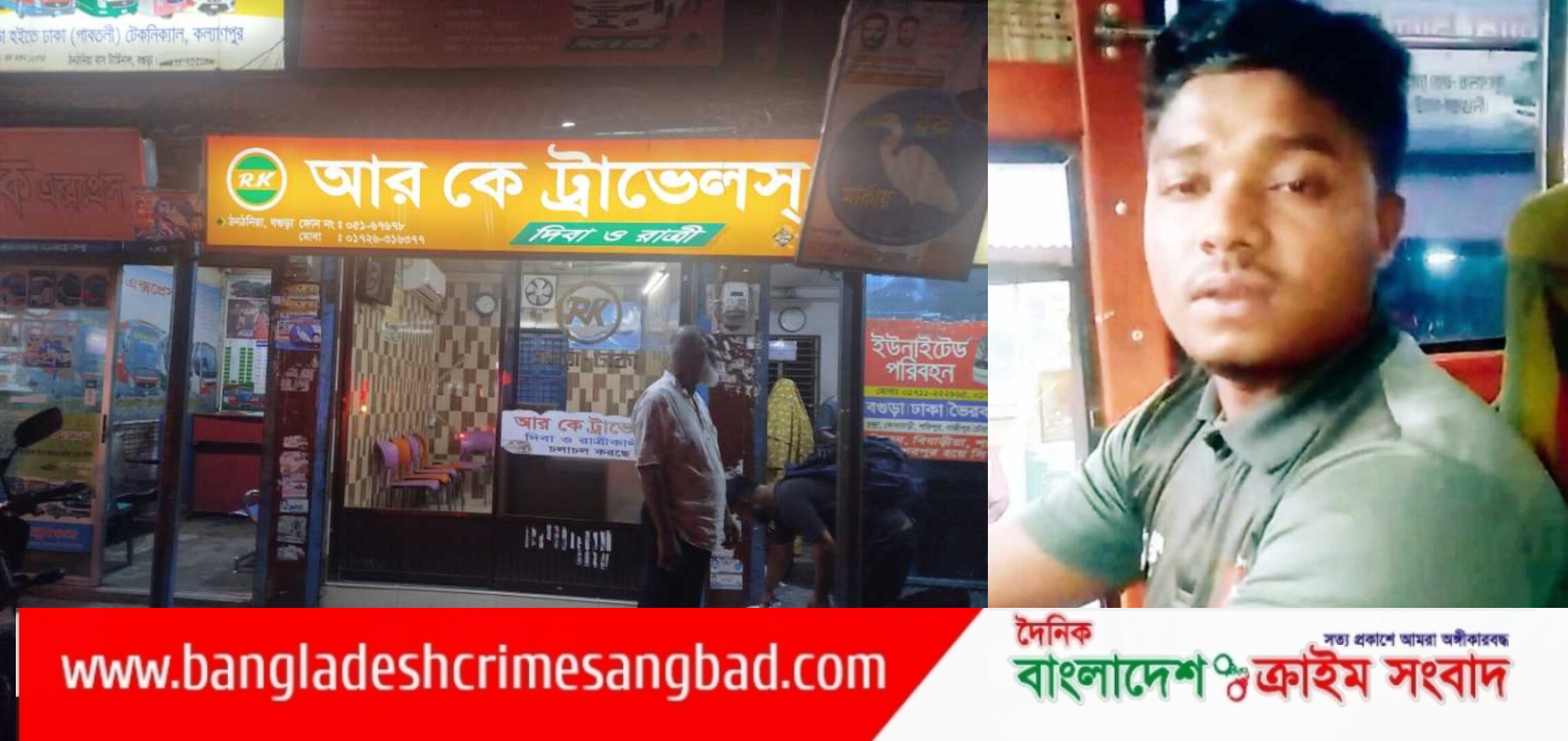 আজ সকাল ১১ টার সিরাজগঞ্জ কড্ডার মোড় হতে ছেড়ে আসে এক কিশোরী যাত্রী তার সাথে থাকা দুই বন্ধু কে নিয়ে আর, কে ট্রাভেলস বাসে করে বেড়াতে আসে বগুড়ায় ,বাসটি বগুড়া বননী বাসস্ট্যান্ডের পৌঁছিয়ে বাসের সব যাত্রী কে নেমে দিয়ে, কিশোরীর সাথে থাকা দুই বন্ধু কে মার পিঠ করে বাস থেকে নেমে দেয় বাসে স্টাফ , তারপর ঐ কিশোরী কে জোর পূর্বক ধর্ষণ করে বাসের ড্রাইভার সাকিব, এরপর ভুক্তভোগী শিক্ষার্থী কিশোরী কান্না শুরু করিলে বাসস্ট্যান্ডের আসে পাশের লোকজন বিষয়টিকে বুঝতে পারলে আর,কে কাউন্টারে ড্রাইভার সহ নিয়ে আসে, এসে বাসস্ট্যান্ডের অন্যান্য স্থানীয় লোকজনরা ঘটনাটি শুনে বাস স্ট্যান্ডের একটি রুমে নিয়ে গিয়ে মেয়েকে নয় ছয় বুঝিয়ে বাস স্ট্যান্ড এলাকা থেকে বিদায় করে দেয়, বিষয়টিক ধামা চাপা দেওয়ার জন্য। কিশোরী তার আত্মার সম্মানের ভয়ে বগুড়া থেকে থেকে চলে যায়, এর পর থেকে আর কে ট্রাভেল ঠনঠনিয়া কাউন্টার বন্ধ করে সবাই চলে যায়।