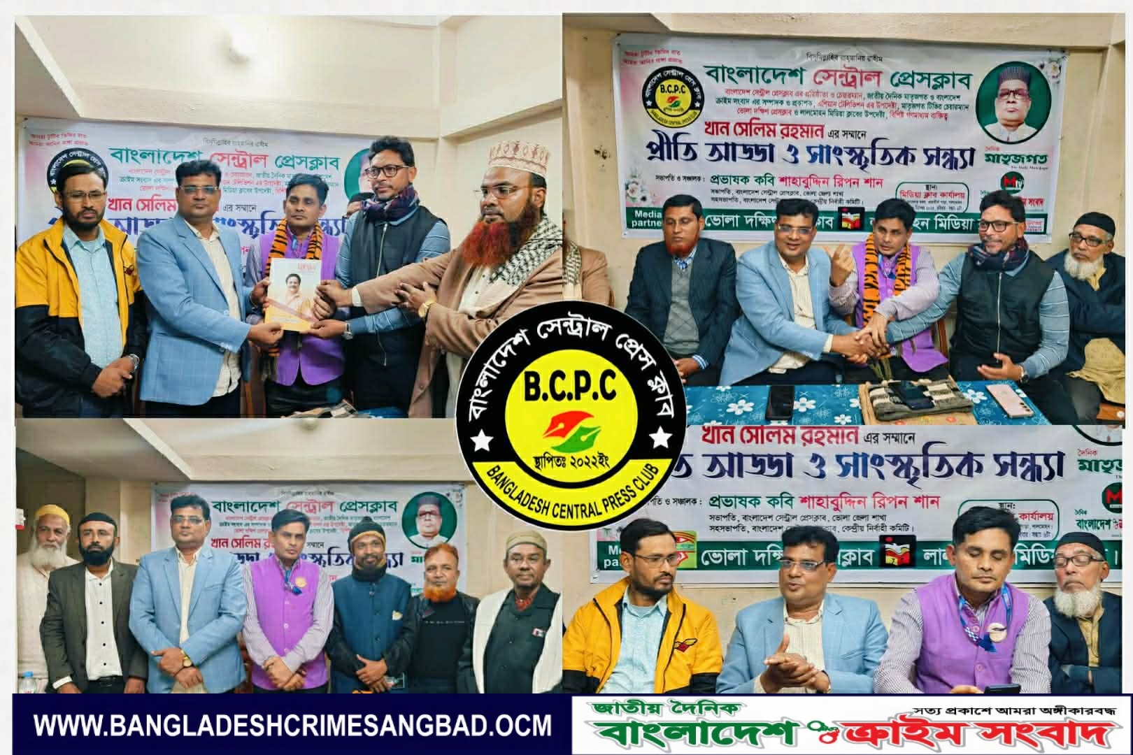 নদীমাতৃক ভোলার গণমাধ্যম কর্মীদের প্রাণের সংগঠন ভোলা দক্ষিণ প্রেসক্লাবের উদ্যোগে বাংলাদেশ সেন্ট্রাল প্রেস ক্লাব (B.C.P.C) প্রতিষ্ঠাতা ও চেয়ারম্যান, জাতীয় দৈনিক মাতৃজগত ও বাংলাদেশ ক্রাইম সংবাদ পত্রিকার সম্পাদক ও প্রকাশক, মাতৃজগত টিভির চেয়ারম্যান, বিশিষ্ট গণমাধ্যম ব্যক্তিত্ব ও নাট্যশিল্পী খান সেলিম রহমানকে নিয়ে এক প্রীতি আড্ডা ও সাংস্কৃতিক সন্ধ্যার আয়োজন করা হয়।