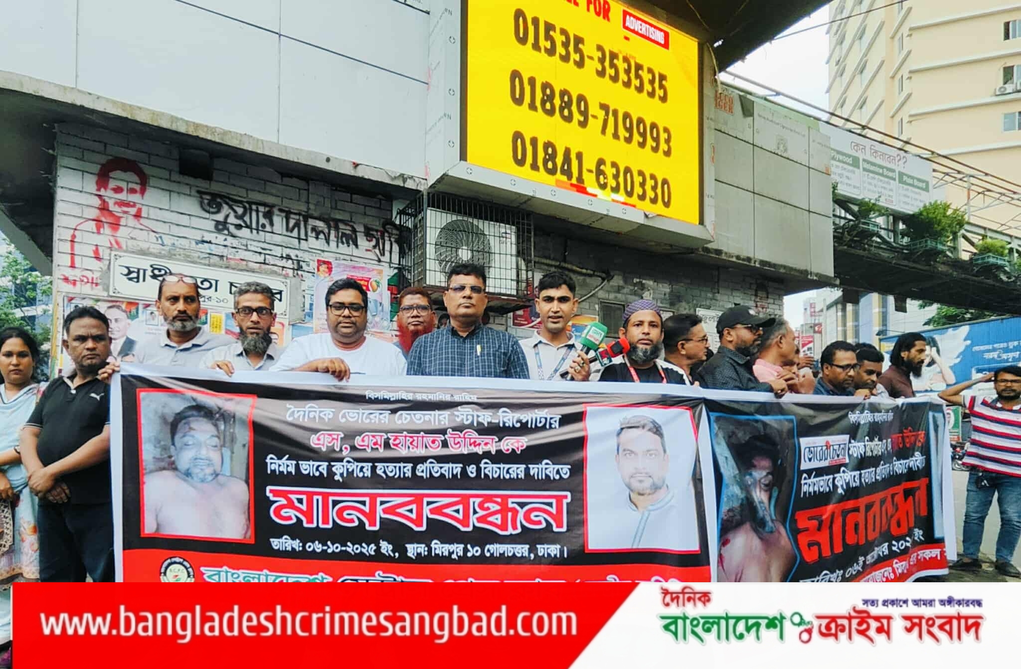 বাগেরহাটে সাংবাদিক হায়াত উদ্দিন হত্যার প্রতিবাদে মিরপুরে বাংলাদেশ সেন্ট্রাল প্রেস ক্লাবের মানববন্ধন,দ্রুত গ্রেফতার ও দৃষ্টান্তমূলক বিচারের দাবি সাংবাদিক সমাজের।