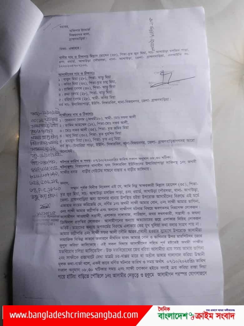 যখমী রুকসানা বেগম স্বামী মো:সফর আলী গ্রাম ৭নং সিংগারবিল ইউনিয়ন উথারিয়া পাড়া বিজয়নগর ব্রাহ্মণবাড়িয়া ৷