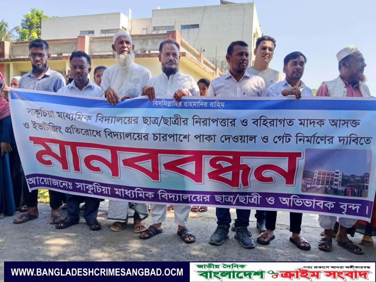 ভোলার মনপুরা উপজেলার সাকুচিয়া মাধ্যমিক বিদ্যালয়ের চারদিকে পাকা বাউন্ডারি দেয়াল নির্মাণ ও বিদ্যালয়ের খেলার মাঠ ভরাটের দাবিতে মানববন্ধন অনুষ্ঠিত হয়েছে।