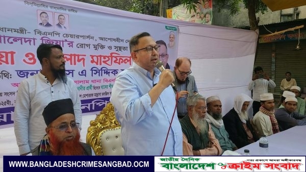 বাংলাদেশের গণতান্ত্রিক আন্দোলনের প্রতীক, তিনবারের সাবেক প্রধানমন্ত্রী, বিএনপি চেয়ারপার্সন ও মমতাময়ী মা মাদার অব ডেমোক্রেসি দেশনেত্রী বেগম খালেদা জিয়ার দ্রুত আরোগ্য, সুস্থতা ও নেক হায়াত কামনা করে রাজধানী ঢাকা এবং চাঁদপুরের ফরিদগঞ্জ উপজেলায় দোয়া মাহফিল, খতমে কোরআন ও সাদকাহসহ ব্যাপক ধর্মীয় কর্মসূচি পালন করা হয়েছে।
