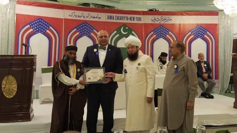 যুক্তরাষ্ট্রের সাবেক প্রেসিডেন্ট ডোনাল্ড ট্রাম্পের অ্যাডভাইজার মিস্টার সাজিদ তাড়ার-এর হাত থেকে সম্মাননা অ্যাওয়ার্ড গ্রহণ করলেন বাংলাদেশী বংশো™ভূত মুফতি হাফিজ লুৎফুর রহমান ক্বাসিমী। আমেরিকার মেইন স্ট্রিম কমিউনিটিতে লিডারশীপ পজিশনে কমিউনিটির সর্বক্ষেত্রে অবদান রাখার জন্যে তিনি এ সম্মাননায় ভূষিত হন। মুফতি ক্বাসিমী সেখানে ইফতা বোর্ড ইন্টারন্যাশন্যাল’র সেক্রেটারী জেনারেল হিসেবে দায়িত্ব পালন করছেন। তিনি সিলেট জেলার বিশ্বনাথ উপজেলার রাজনগর গ্রামের মরহুম আলহাজ্ব আলতাফুর রহমানের ছেলে। রবিবার যুক্তরাষ্ট্রস্থ জামিয়া জাকারিইয়া মহিলা টাইটেল মাদ্রাসা নিউ ইয়র্কের আন্তর্জাতিক ৮ম গ্র্যাজুয়েশন ও খতমে বুখারি সম্মেলনে তাকে এ সম্মাননা প্রদান করা হয়। এসময় মুফতি হাফিজ লুৎফুর রহমান ক্বাসিমীসহ অন্যান্য কমিউনিটি লিডারদের সম্মাননা প্রদান করে ‘আল মুনীর ফাউন্ডেশন।’ রবিবার বিকাল ৩টায় আন্তর্জাতিক সম্মেলন শুরু হয় ও সন্ধ্যা ৮টায় সমাপ্ত হয়েছে। সেখানে স্থানীয় ও আন্তর্জাতিক স্কলাররা বক্তব্য রাখেন। শিক্ষার্থীদের মধ্যে এবছর গ্র্যাজুয়েশন সম্পন্নকারী চারজন আলিমা ও চারজন হাফিজাকে সম্মাননা প্রদান করা হয়েছে। আমেরিকার গ্র্যান্ড মুফতি, ইফতা বোর্ড ইন্টারন্যাশন্যাল ও আল মুনীর ফাউন্ডেশনের চেয়ারম্যান মুনীর আহমদ আখুনের সভাপতিত্বে ও জামিয়া জাকারিইয়া মহিলা টাইটেল মাদ্রাসার প্রিন্সিপাল মাওলানা সৈয়দ ফাহাদ হুসাইনের পরিচালনায় অনুষ্ঠিত সম্মাননা প্রদান অনুষ্ঠানে প্রধান অতিথি হিসেবে উপস্থিত ছিলেন সাবেক প্রেসিডেন্ট ডোনাল্ড ট্রাম্পের অ্যাডভাইজার মিস্টার সাজিদ তাড়ার। বিশেষ অতিথি হিসেবে উপস্থিত ছিলেন- বিশিষ্ট কমিউনিটি লিডার ডাক্তার তাহের, বিশিষ্ট কমিউনিটি অ্যাকটিভিস্ট সিপিএ আইনুল হক। আন্তর্জাতিক স্কলারদের মধ্যে বক্তব্য রাখেন- মাওলানা ফজলুর রহমান (পাকিস্তান), মাওলানা ফজলুর রহিম (পাকিস্তান), মাওলানা আজিজুর রহমান (পাকিস্তান)।