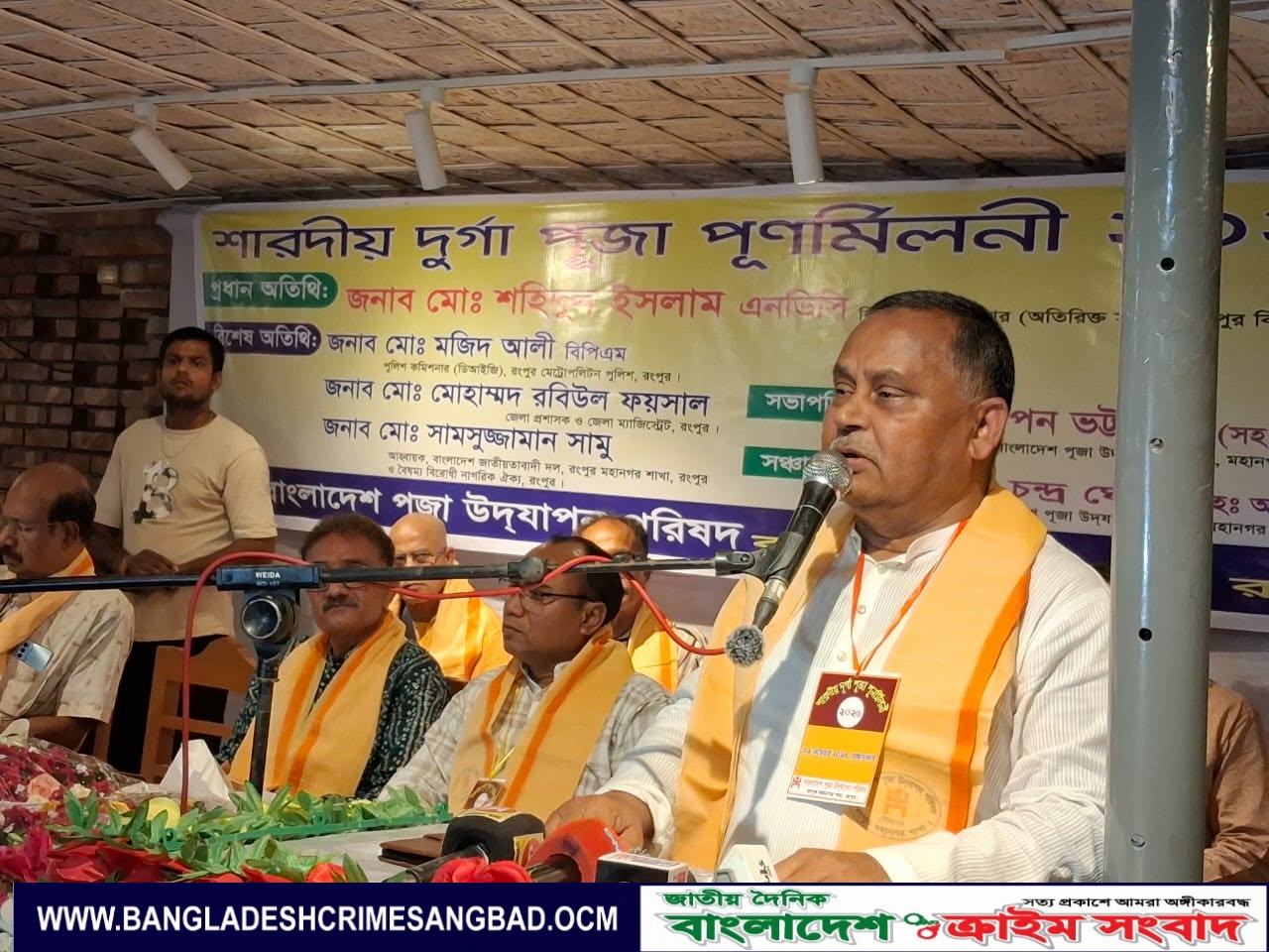 রংপুর মহানগরীর চাষি কমিউনিটি সেন্টারে এক বর্ণাঢ্য আয়োজনের মধ্য দিয়ে অনুষ্ঠিত হলো বাংলাদেশ পূজা উদযাপন পরিষদ, রংপুর মহানগর শাখার উদ্যোগে “শারদীয় দুর্গাপূজা পুনর্মিলনী ও মতবিনিময় সভা–২০২৫”। নগরীর ছয়টি থানার সভাপতি-সাধারণ সম্পাদক, বিভিন্ন পূজা মণ্ডপের আয়োজক কমিটির নেতৃবৃন্দসহ প্রায় আড়াই হাজার সনাতন ধর্মাবলম্বীর অংশগ্রহণে আয়োজিত এ অনুষ্ঠান পরিণত হয় এক মহাসমাবেশে।