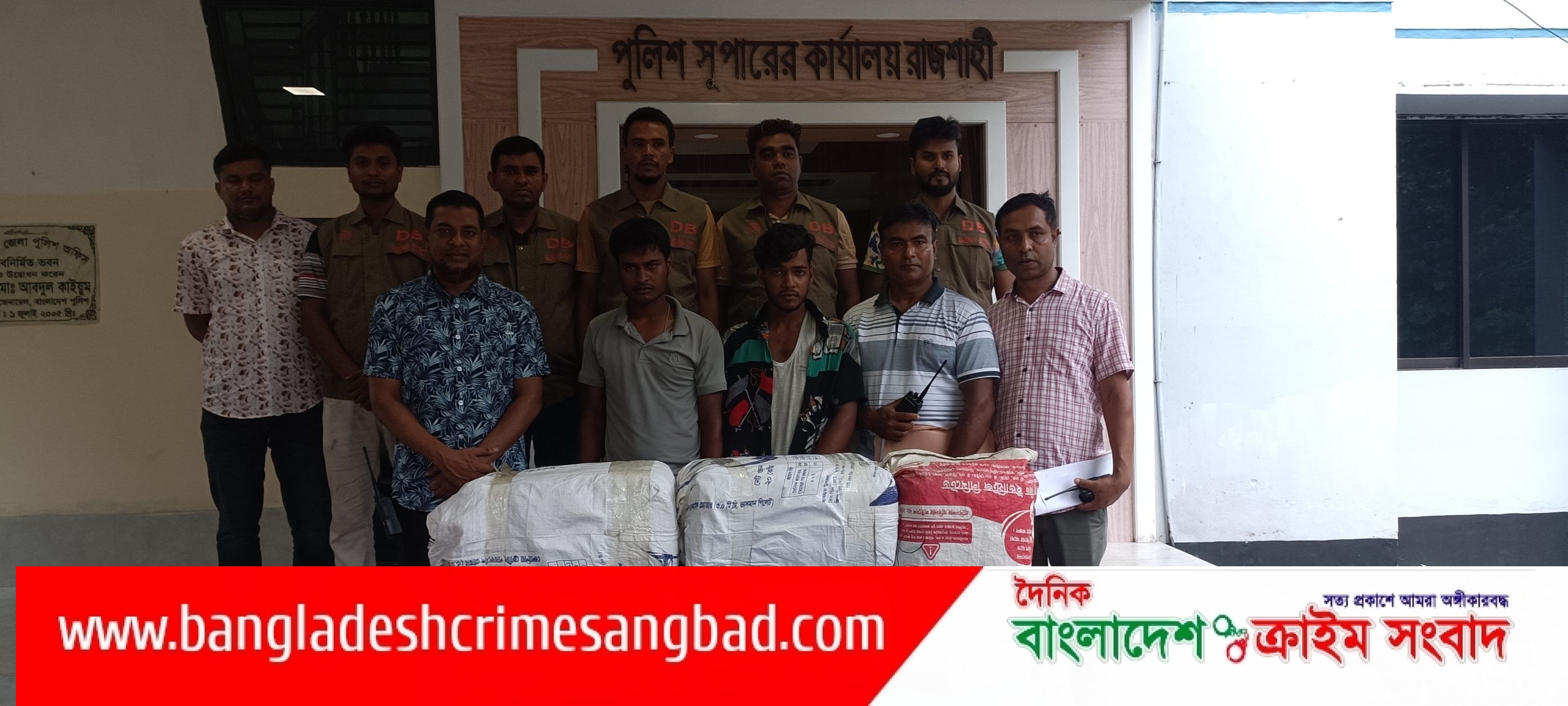 রাজশাহী জেলায় স্মরণ কালের বৃহত্তম গাঁজার চালান আটক৷ দেশের অন্যতম বৃহৎ হেরোইনের চালান আটকের রেশ না কাটতেই রাজশাহী জেলা পুলিশের গোয়েন্দা শাখা জেলার স্মরণ কালের বৃহত্তম গাঁজার চালান আটক করেছে৷ পুলিশ সুপার এবিএম মাসুদ হোসেন বিপিএম বার এঁর নির্দেশনায় অতিরিক্ত পুলিশ সুপার সনাতন চক্রবর্তীর তত্ত্বাবধানে ওসি ডিবি আব্দুল হাই পিপিএম, ইন্সপেক্টর আতিক, এসআই নাসিমদের নেতৃত্বে অভিযান পরিচালনা করে জেলা গোয়েন্দা শাখার অভিযানে বাগমারা থানার শুভডাঙ্গা ইউনিয়নের বসন্তপুর গ্রাম থেকে উল্লেখিত গাঁজা আটক করা হয়৷