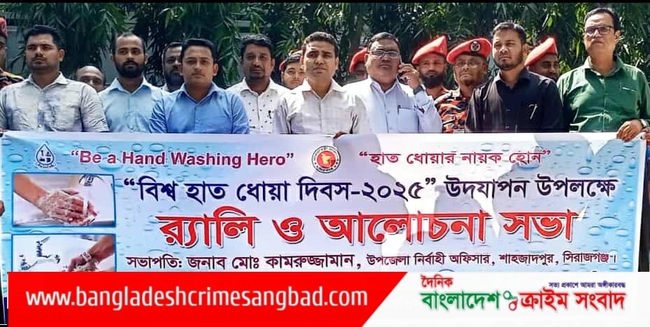 সিরাজগঞ্জের শাহজাদপুরে সোমবার প্রাণবন্ত আয়োজনের মধ্য দিয়ে উদযাপিত হলো “বিশ্ব হাত ধোয়া দিবস-২০২৫”। উপজেলা প্রশাসন ও জনস্বাস্থ্য প্রকৌশল অধিদপ্তরের আয়োজনে উপজেলা পরিষদ চত্বরে অনুষ্ঠিত হয় বর্ণাঢ্য র্যালি ও আলোচনা সভা।