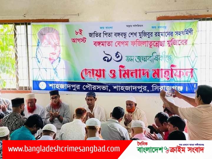 শাহজাদপুর শেখ মুজিবুর রহমানের সহধর্মিণী বঙ্গমাতা’র ৯৩ তম জন্ম বার্ষিকীতে দোয়া ও মিলাদ মাহফিল অনুষ্ঠিত