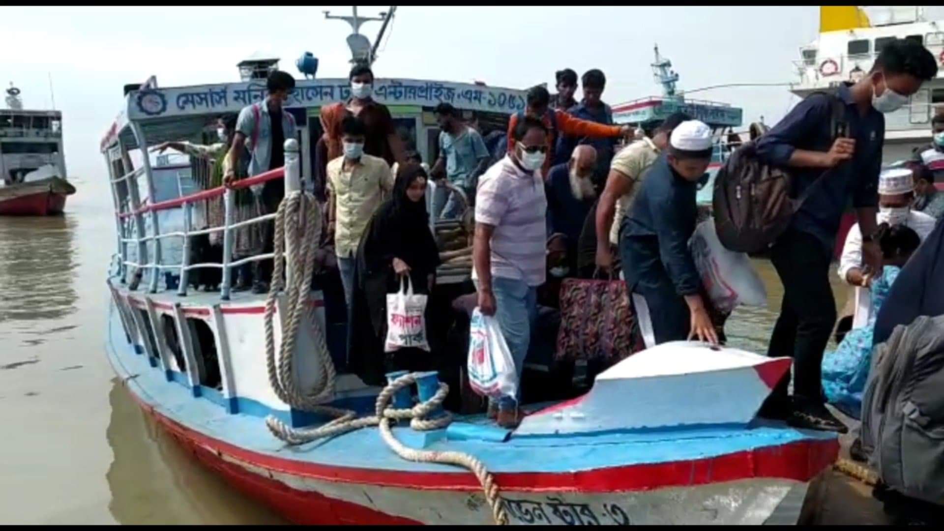 শিমুলিয়ায় ফেরিতে যাত্রীর চাপ কমেছে, চলছে লঞ্চ