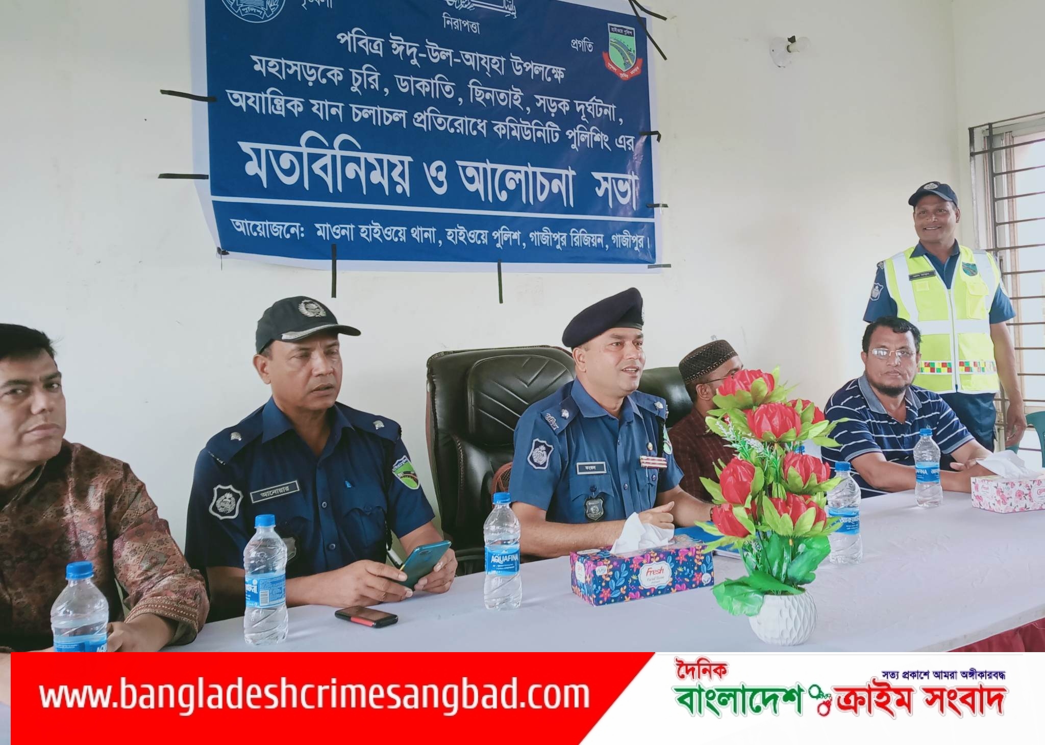 মাওনা হাইওয়ে থানার সেকেন্ড অফিসার এসআই রফিকুল ইসলামের সঞ্চালনায় ওসি কংকন কুমার বিশ্বাসের সভাপতিত্বে সভায় প্রধান অতিথি হিসেবে উপস্থিত ছিলেন হাইওয়ে থানা কমিউনিটি পুলিশিং এর সভাপতি -শ্রীপুর পৌরসভার প্যানেল মেয়রও ৭নং ওয়ার্ড কাউন্সিলর মোহাম্মদ হাবিবুল্লাহ।