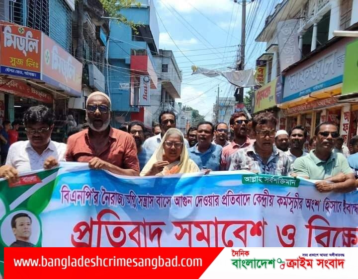 রবিবার (৩০ জুলাই) সকাল ১১ টায় জেলা আওয়ামী লীগের আয়োজনে কার্যালয় থেকে একটি বিক্ষোভ মিছিল বের করে শহরে বিভিন্ন সড়ক প্রদক্ষিণ করে জেলা কার্যালয় এসে শেষ করেন।এসময় বিক্ষোভ মিছিলে উপস্থিত ছিলেন জাতীয় সংসদের হুইপ মাহাবুব আরা বেগম গিনি এমপি,জেলা আওয়ামী লীগের সভাপতি আবু বক্কর সিদ্দিক, সাধারণ সম্পাদক মোজাম্মেল হক মন্ডল,সাংগঠনিক সম্পাদক আমিনুজ্জামান রিংকু, পিয়ারুল শাহ সারোয়ার কবির,সহ সভাপতি শাহ মাসুদ জাহাঙ্গীর কবির মিলন সহ অঙ্গ সহযোগী সংগঠনের নেতাকর্মী।