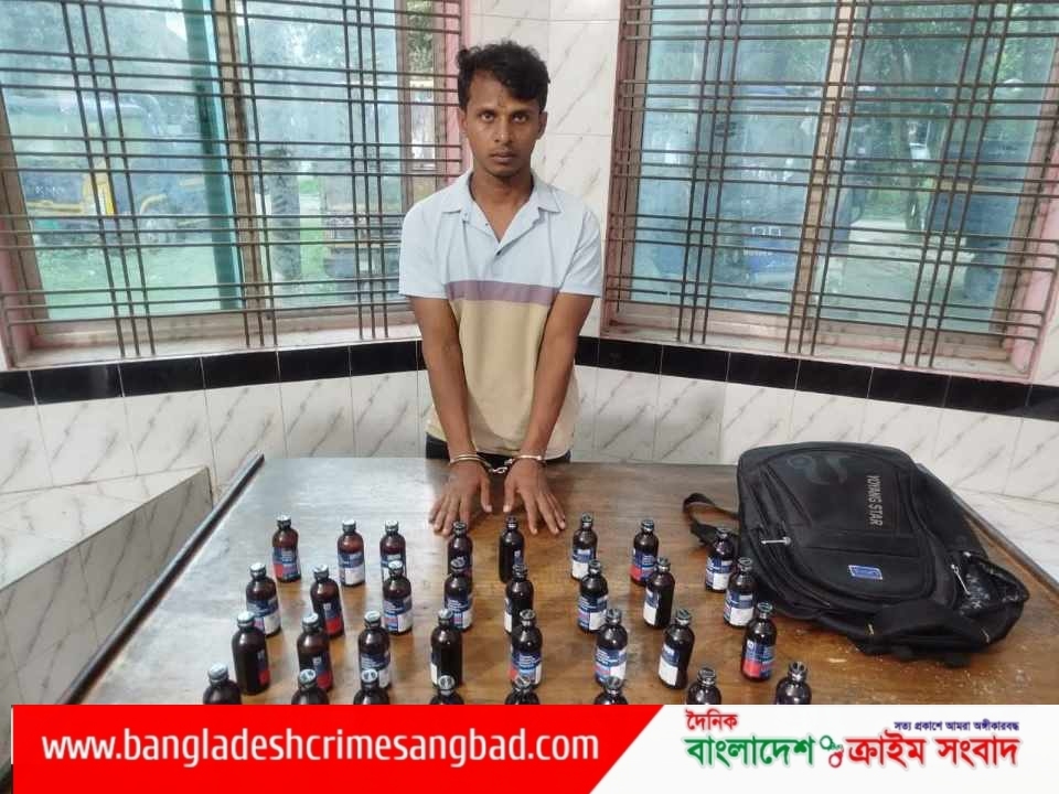 স্কুল ব্যাগে ৩২বোতল ফেন্সিডিল সহ গ্রেফতার এক জন