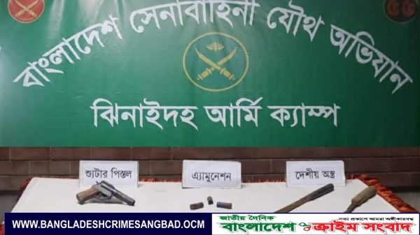 মোঃ পারভেজ ঝিনাইদহ ঝিনাইদহের কালীগঞ্জ উপজেলার সড়াবাড়িয়া এলাকায় অভিযান চালিয়ে পরিত্যক্ত অবস্থায় পিস্তল, গুলি ও দেশীয় ধারালো দা উদ্ধার করেছে সেনাবাহিনী। পিস্তলে লেখা মেইড ইন ইন্ডিয়া। রবিবার দিবাগত রাতে অভিযান
