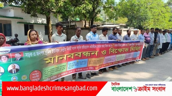 মোঃ পারভেজ ঝিনাইদহ ঝিনাইদহে ৭ দফা দাবী বাস্তবায়নে মানববন্ধন ও বিক্ষোভ মিছিল করেছে সড়ক ও জনপথ বিভাগের কর্মচারীরা। সোমবার (২০ অক্টোবর) সকালে সড়ক বিভাগের সামনে শ্রমিক ইউনিয়নের কেন্দ্রীয় কর্মসূচীর অংশ