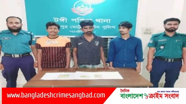 সেলিম মাহমুদ স্টাফ রিপোর্টার: গাজীপুরের টঙ্গী পশ্চিম থানাধীন টঙ্গীবাজার হোন্ডা রোড এলাকা থেকে ২ শত ২০ পুড়িয়া ( ২২ গ্রাম) হেরোইনসহ তিন মাদক কারবারিকে গ্রেফতার করেছে টঙ্গী পশ্চিম থানা পুলিশ।