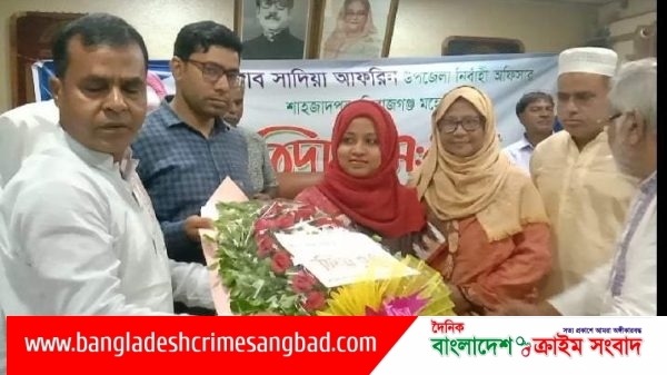 কে এম নাছির উদ্দীন সিনিয়র ক্রাইম রিপোর্টার: সিরাজগঞ্জের শাহজাদপুরে উপজেলা নির্বাহী কর্মকর্তা সাদিয়া আফরিনকে বিদায়ী সংবর্ধনা দিয়েছে বিভিন্ন সংগঠন। আজ দুপুরে উপজেলা নির্বাহী অফিসারের কার্যালয়ে সংবর্ধনা দেন। উপজেলা পরিষদের ভাইস