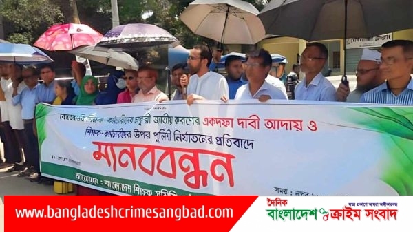 হাফিজুর রহমান, মৌলভীবাজার প্রতিনিধিঃ বাংলাদেশ শিক্ষক সমিতি মৌলভীবাজার জেলার আয়োজনে বেসরকারি শিক্ষক কর্মচারীদের চাকুরি জাতীয়করণের এক দফা দাবি আদায় ও শিক্ষক কর্মচারীদের উপর পুলিশ নির্যাতনের প্রতিবাদে মৌলভীবাজার প্রেসক্লাবের সামনে মানববন্ধন